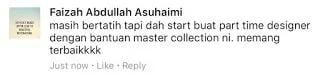 "..Dah start buat part time designer dengan bantuan MasterCollection ni.." - Faizah Abdullah